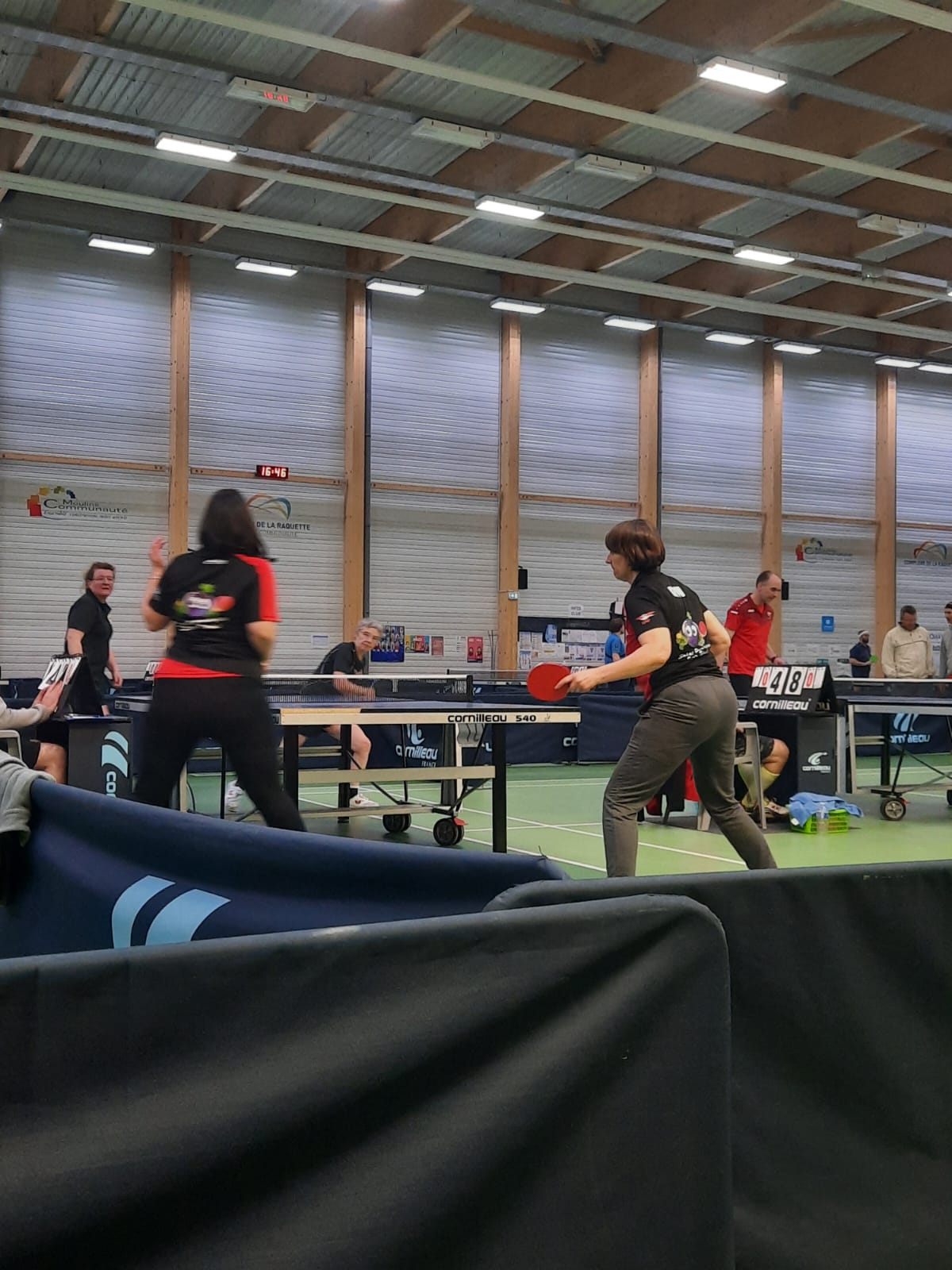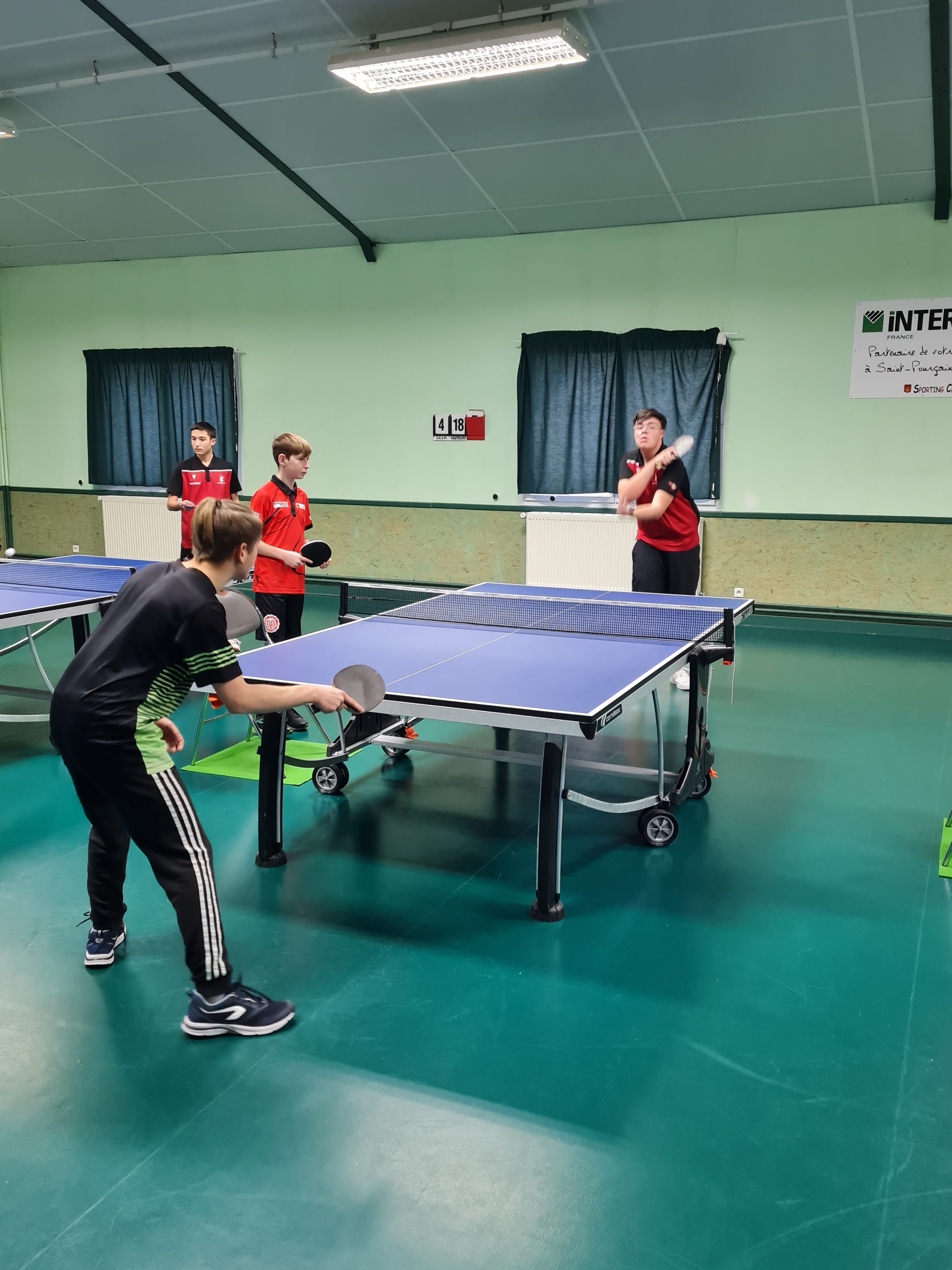 En déplacement chez le 2ème du championnat , l'équipe de Corinne COURRIER s'attendait à une rencontre difficile . Avec leur joueur phare ( invaincu face à nos St Pourçinois ) , Pierre Antoine AÏK ( classé 1233 FFTT )