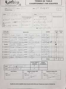 A noter qu'une fois de plus AUROUER alignait son meilleur joueur ( qui évolue également en championnat FFTT et qui est classé virtuellement 1219 points ) : Pierre Antoine AIK .
